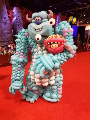 A monsterous party deserves a monsterous sculpture. Step in Sully and Boo From Pixars’ Monsters Inc. Boo is even wearing her monster disguise with big round eyes as huge blue Sully sneaks her out of the factory.
