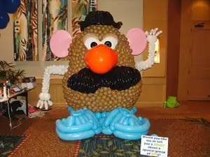 This huge replica of Toy Stories’ Mr Potato Head will keep any dinner guests amused. There are an insane amount of round brown balloons making up his body and his moustache and hat are made of black long balloons. Wonder if they detach the same as the toy.