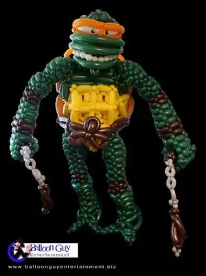 The Ninja Turtles made their first appearance in the 1980’s and became popular all over the world. Here’s Michelangelo in his trademark orange bandanna and nunchucks. With his pizza munching balloon teeth this will get the whole room shouting “COWABUNGA”.