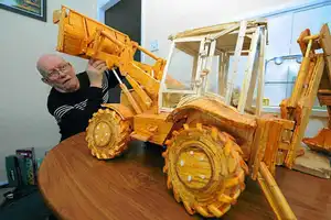 Artist John Hurley took over a year to construct this digger using 250,000 matches. The 77 year old had been making matchstick models since age 11. With moving shovel, the diggers doors also work.