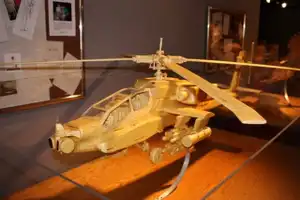 This American attack helicopter has been scaled down to 1/10 and is made up of 26,000 matchsticks. Taking almost 200 hours to build the extremely detailed structure shows the vehicles gun barrels and cockpit.