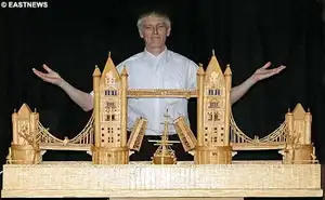 10 years in the making and using 1.6million matchsticks, this gigantic model of Tower Bridge measures 6ft in length and has 156 working lights built in, taking 2 years longer to build then the real thing.
