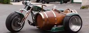 This curious sidecar might bring unwanted attention from law enforcement but the beer barrel machine looks incredible with its wooden body, gold binding and little tap on the front.