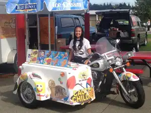 Staying cool whilst staying cool. This sidecar has been converted into a mobile freezer serving ice cream to the masses. You’ll hear it coming with its two large speakers playing traditional ice cream truck lullabies.