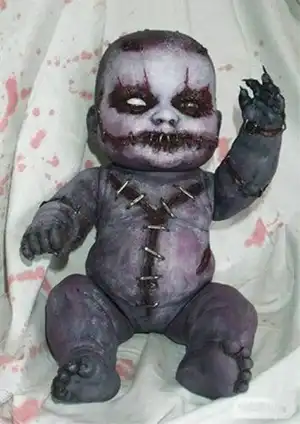 This hyper realistic doll comes straight from the fires of hell. The details in its eyes and skin tone makes this doll all the more creepier. Waking up next to this burnt baby is what bad dreams are made of.