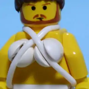 The 1999 single by Aphex Twin was designed by artist Chris Cunningham. The cover shows the musician's face pasted onto a female body. Somehow the LEGO version captures the unique cover pretty well — with a little help of some plastic wire to create a makeshift bikini!