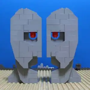Marking Pink Floyds’ fourteenth release, these two metal statues stood as tall as a double decker bus. The LEGO faces might not be quite as tall, but they still capture the menacing eyes of the original.