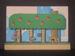 Always a classic, the iconic Super Mario Bros. 3 scene with Racoon Mario, red and green Koopa Troopers, a flying Goomba and a 1UP mushroom all featured in this diorama. It explores the third edition in the series which experienced its initial 1988 release in Japan before reaching the U.S market in 1990 and finally Europe in 1991.