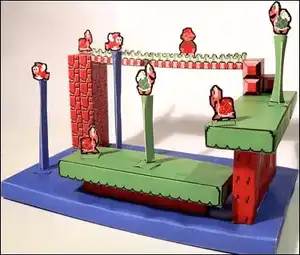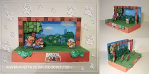 This diorama is inspired by the mini-game in Super Mario 64, where you got to manipulate Mario’s features and make him as horribly deformed as you please. Although not enabling this special original feature it is nonetheless some top quality papercrafting. The 3D idol shows great detail with his moustache, hair, shape of the hat and the colors match perfectly to 1996 Mario.