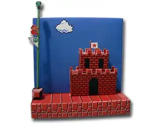 Designed to scale, this diorama is from world 1-1 of Super Mario Brothers. Released for NES in 1895, the now infamous plumber gets his first outing in the Mushroom Kingdom, his mission, to save Princess Toadstool from the evil King Bowser. This colorful diorama shows off some of the classic elements from the game; a Goomba on the attack, a super mushroom to collect and four boxes to hit.