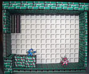 Showing the original Mega Man on the NES from back in 1987 we can see him engaged in battle with Cut Man. One of the simpler dioramas on display here but it still manages to conjure up some of the old magic of the game.