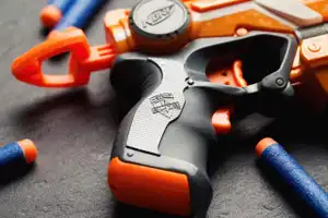 The foam darts for the NERD Grenade Launcher are the biggest in the range and will buy you a few seconds if you manage to get one on target. If your foam grenade lands close to your enemy, then after 2.3 seconds, they are contractually obliged to make an exploding sound with their mouth and jump backwards onto the ground.